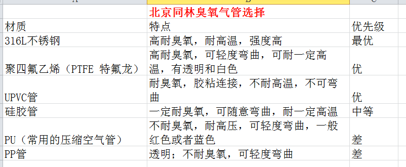 (1)與臭氧接觸的器材應以玻璃、氟樹脂、不銹鋼等耐臭氧性強的材料。