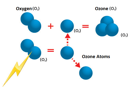 臭氧自然存在于我們的環(huán)境和空氣中。當(dāng)由兩個(gè)氧原子組成的氧氣受到雷電或紫外線照射的能量時(shí),就會(huì)形成這種物質(zhì)。