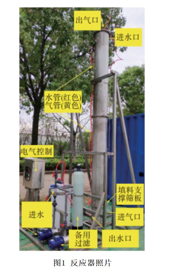 催化臭氧氧化反應器使用的是填料塔。一般化工過程使用的填料塔主要體現(xiàn)吸收、吹脫兩種分離過程,連續(xù)相為氣相;而本研究填料塔連續(xù)相為液相,不僅因為采用鈦盤等布氣裝置分散臭氧,且氣水比一般均小于1.0。