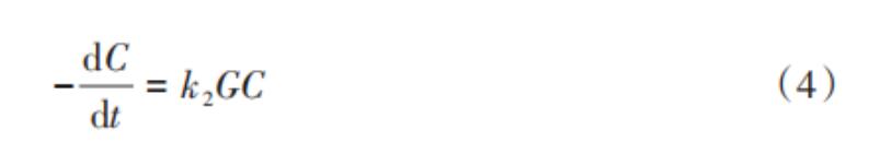 設塔式反應器的流型為推流式,臭氧濃度的變化見式(1)。