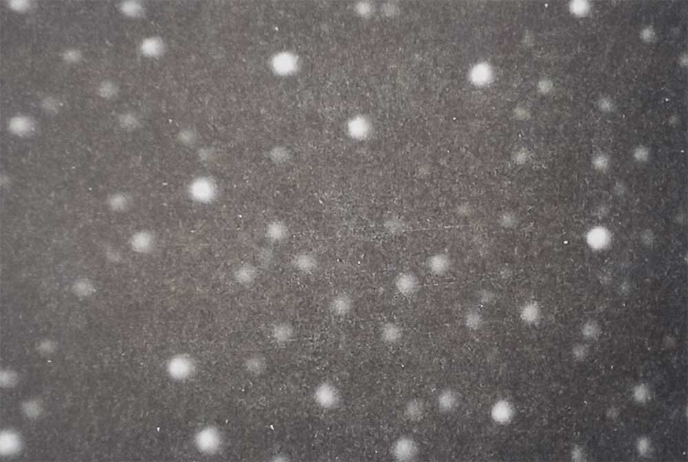 圖2圖左是自來水作基盤的空氣納米氣泡之顯微鏡圖像。納米氣泡不可能從光學(xué)上觀察到,但從橫向激光照射時,如碰到即使是納米級粒子也會產(chǎn)生漫反射,從而可觀察其光點。微細粒子受水分子的影響會作布朗運動,其因粒子大小其狀態(tài)也各異,以此解析各粒子的布朗運動也可求出其粒徑分布。例中小于100nm范圍內(nèi)也得到過峰值,但以此方法還難以識別納米氣泡和納米級的固體粒子。由此保存使用參考數(shù)據(jù)資料是較簡單的計測法,實屬無奈之舉。