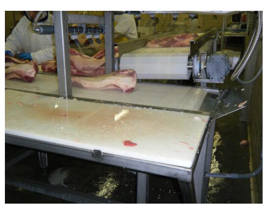 當牛腩在傳送帶上移動時,將臭氧水噴灑在牛腩上。正確設置,這將允許臭氧水和牛肉之間有足夠的接觸時間。臭氧水還將對輸送機進行消毒,并確保病原體不會在牛肉邊角料之間轉移。